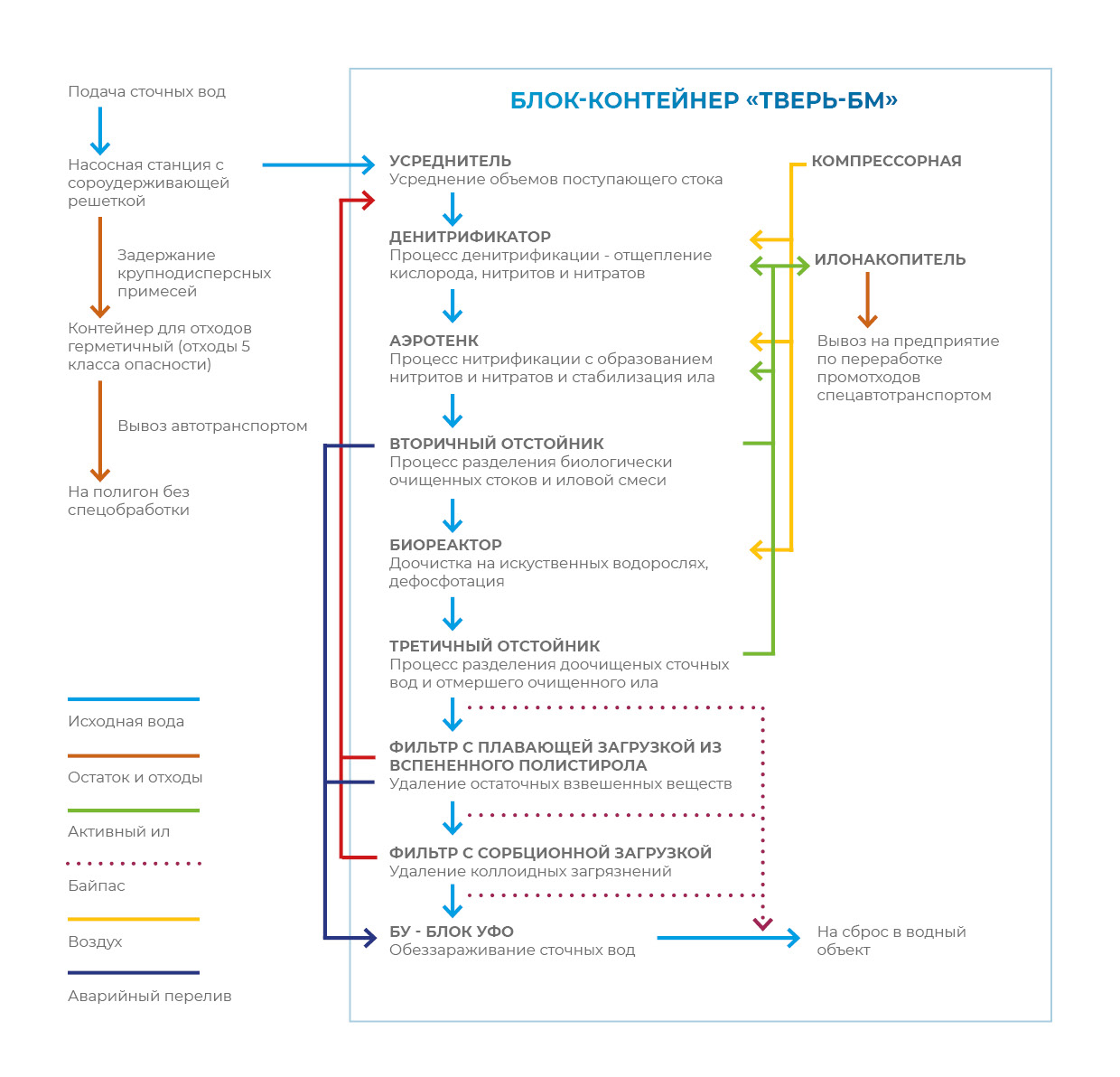 - БИОЛОГИЧЕСКАЯ ОЧИСТКА с процессами нитрификации-денитрификации, обеспечивающая удаление не только органических загрязнений, но и биогенных элементов (азота и фосфора).
